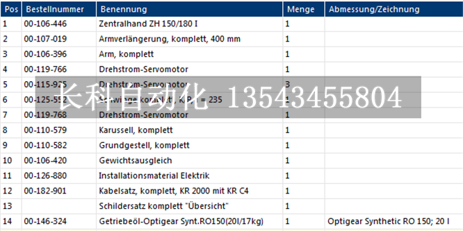 KUKA kr100-2p機器人配件訂貨號
