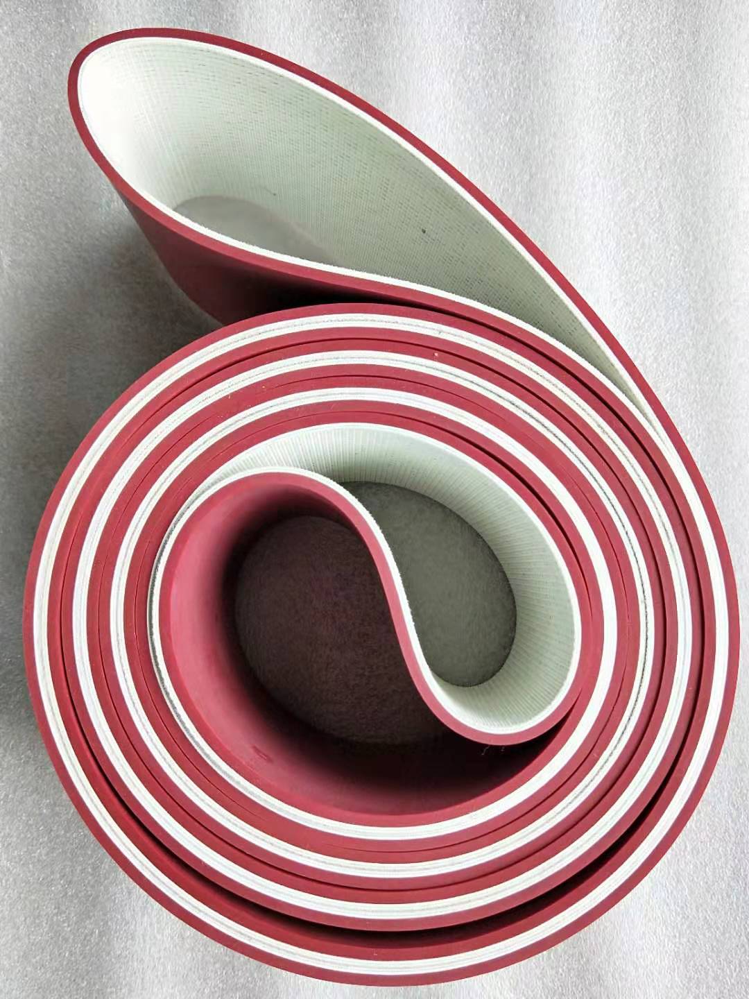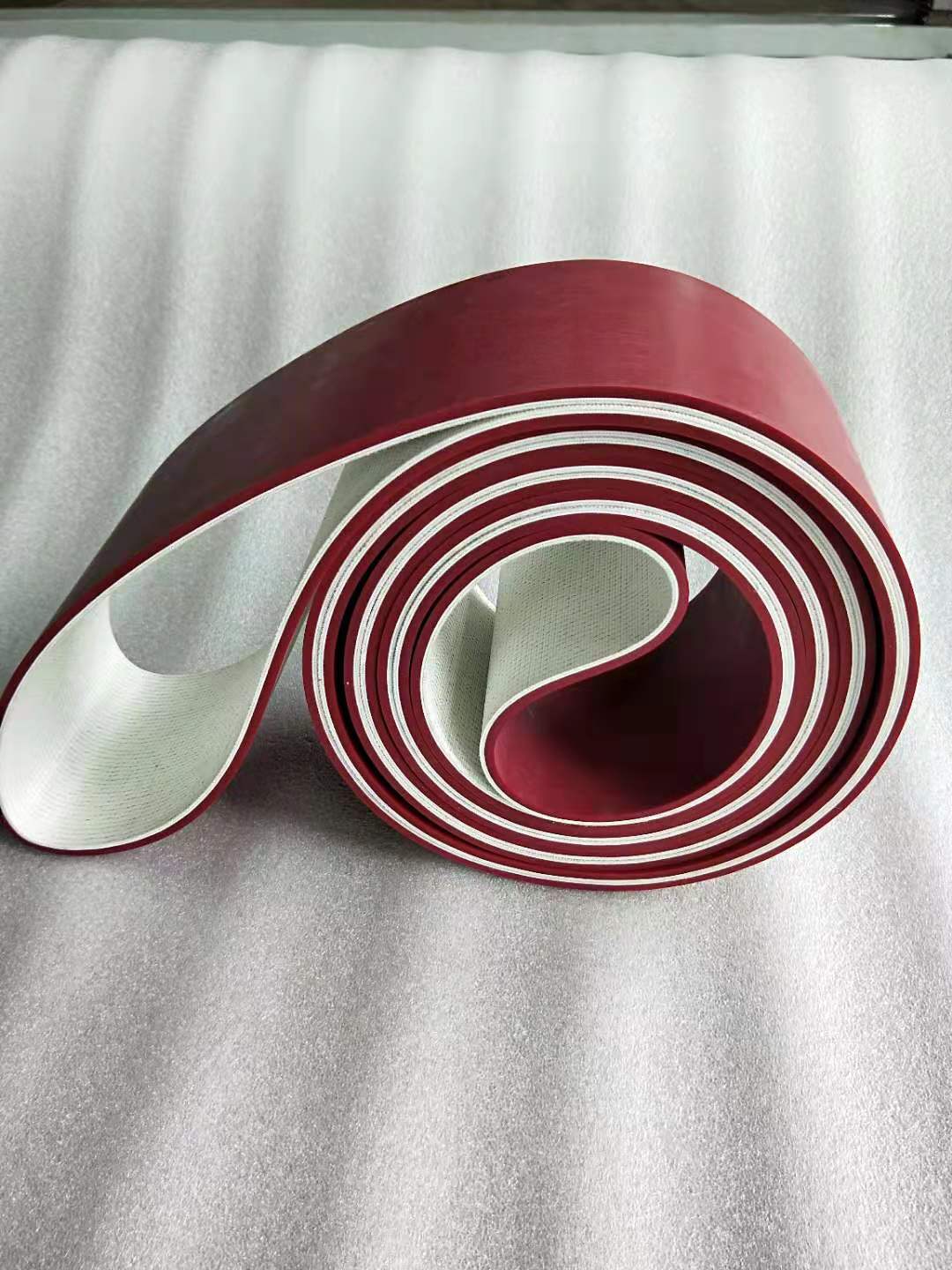 加膠輸送帶是在平皮帶為基帶上附一層紅膠、白膠、黑膠、海綿等,具有耐磨、防滑的,柔軟,吸水油等 特點,厚度可加2-10mm 。