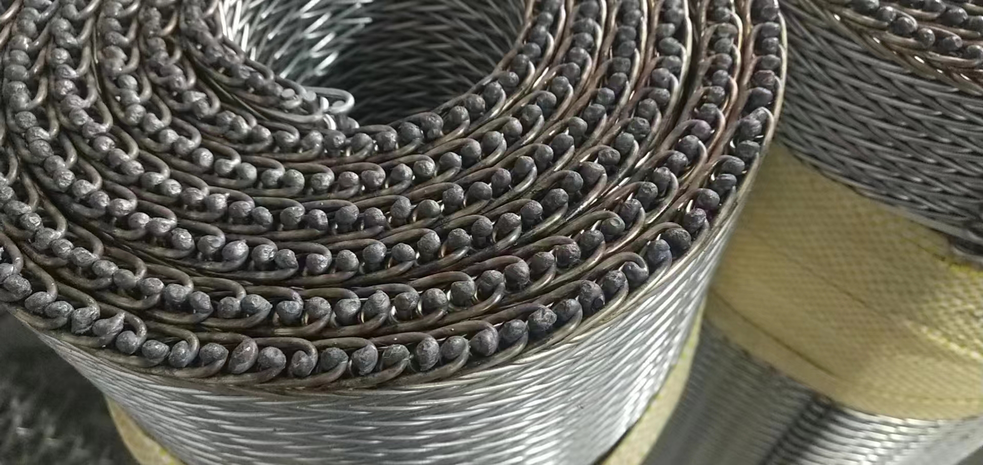 無縫編織、無縫針刺毛氈、鋼網(wǎng)帶、鋼絲網(wǎng)芯助卷器皮帶、尼龍片基 等。
